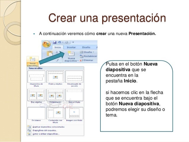 Para crear una presentación:Trucos para una buena presentación de PowerPoint: Ser divertido; reducir la velocidad; mantener contacto visual con todos; no leer; practicar; no disculparse y lo más importante: diviértete.
